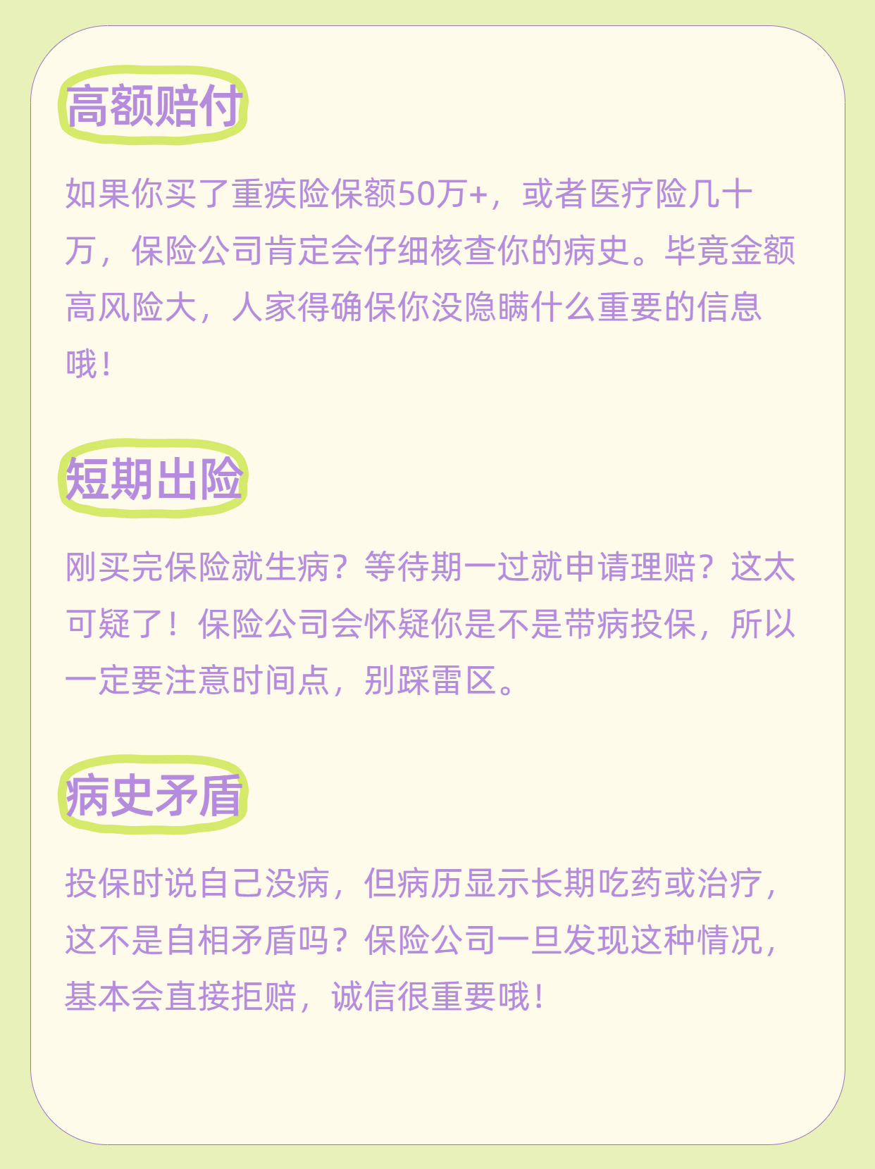 最重要的是 ⭐ 保险本质是契约关系,建立在诚信基础上。你诚实告知,公司就诚信理赔!